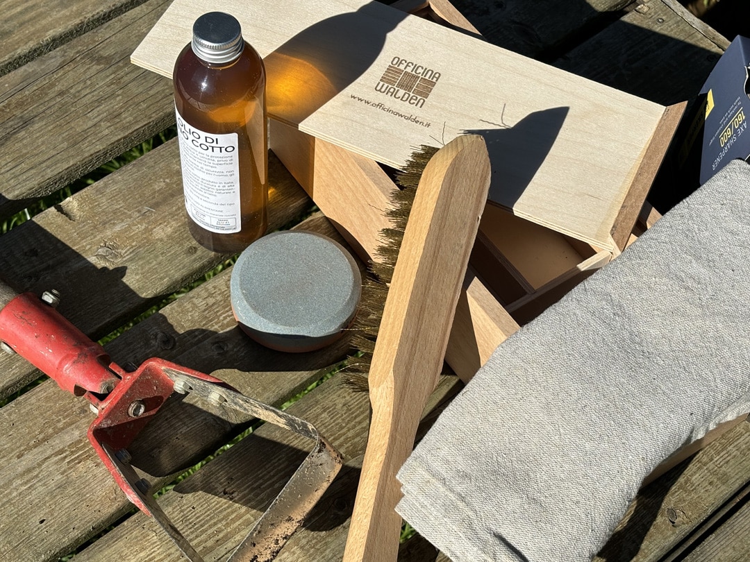 • I manici ed i bastoni in legno vanno trattati ciclicamente con olio di lino cotto in modo da preservarne l’elasticità, la resistenza all’acqua ed evitare che il legno si secchi rischiando di spaccarsi o peggio di ferirvi con fastidiose schegge.