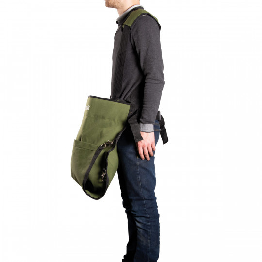 Questa borsa per la raccolta offre comfort, ergonomia e produttività all’utente, poiché il carico è bilanciato sulle spalle e il caricamento degli ortaggi frontale limita i movimenti di flessione/estensione. La sacca è velocemente svuotabile semplicemente sganciando il fondo nelle casse di raccolta, riducendo i tempi di lavoro e mantenendo costantemente una corretta postura. Grazie alle numerose possibilità di regolazione, la sacca, si adatta a qualsiasi tipo di fisico e di utilizzo.